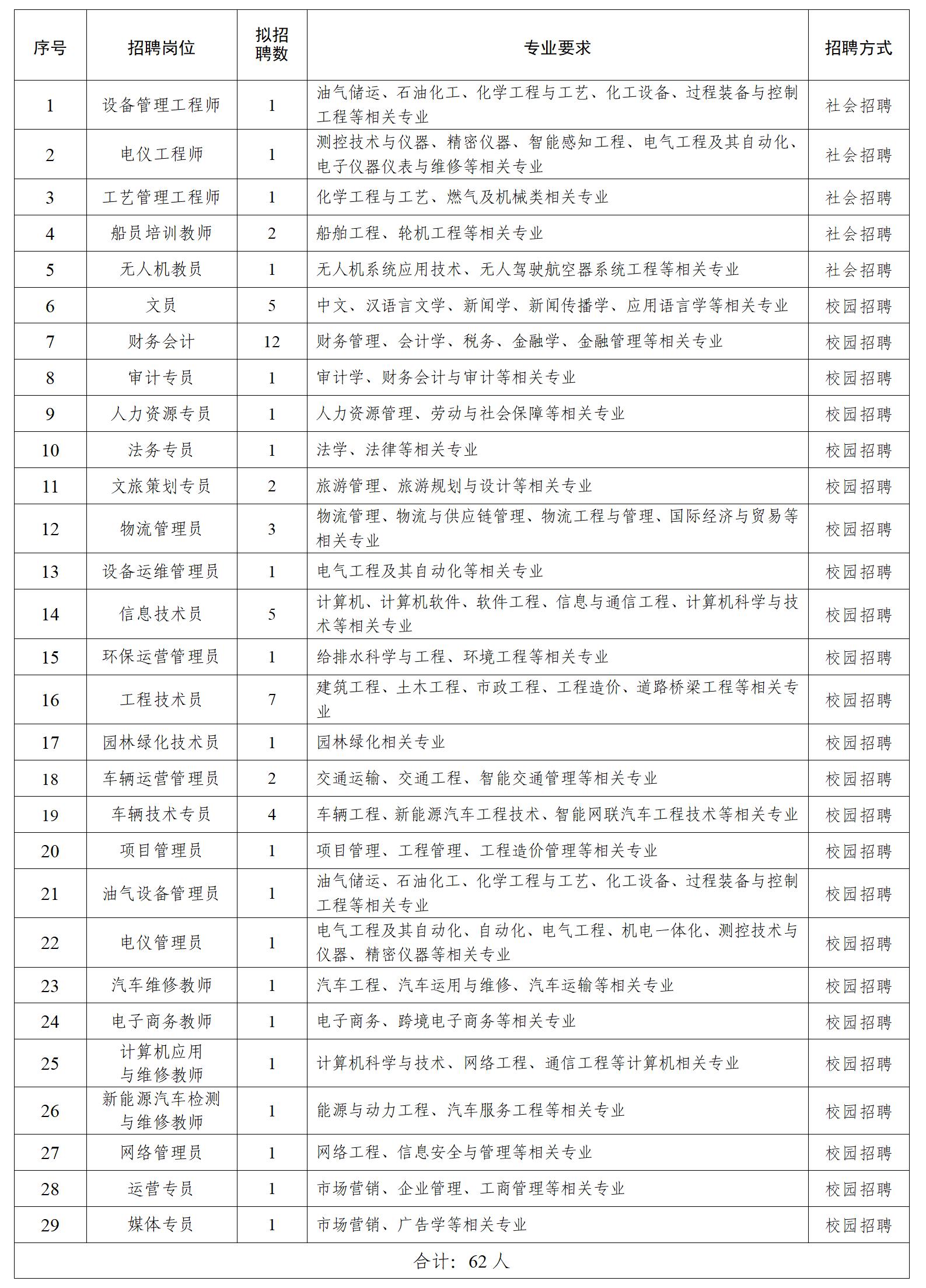 2.船員培訓(xùn)教師及無人機(jī)教員崗位應(yīng)聘者應(yīng)具備普通高等院校大專及以上學(xué)歷和相應(yīng)學(xué)位,其他崗位應(yīng)聘者應(yīng)具備普通高等院校本科及以上學(xué)歷和相應(yīng)學(xué)位,且專業(yè)與崗位需求相匹配;