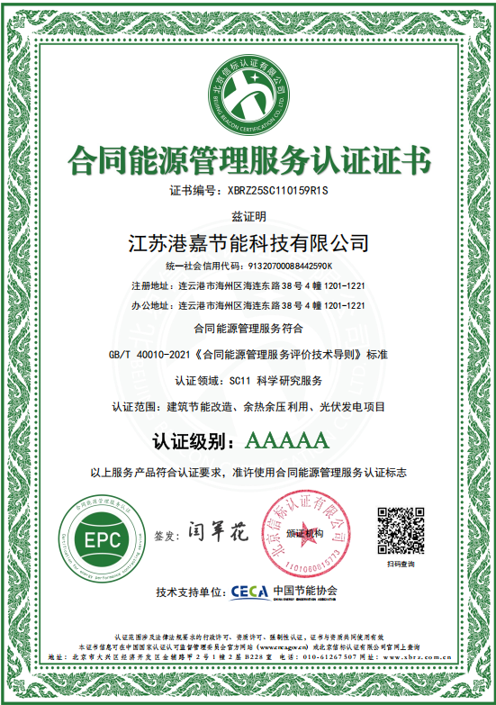 近日江蘇港嘉節(jié)能科技有限公司憑借其卓越的節(jié)能服務(wù)和專業(yè)的技術(shù)能力,成功通過嚴(yán)格的服務(wù)認(rèn)證審查,繼續(xù)保持在建筑節(jié)能改造、光伏發(fā)電項(xiàng)目、余熱余壓利用3項(xiàng)領(lǐng)域中的合同能源管理服務(wù)5A級能力認(rèn)證。本次復(fù)審認(rèn)證依據(jù)GB/T40010-2021《合同能源管理服務(wù)評價(jià)技術(shù)導(dǎo)則》標(biāo)準(zhǔn),由權(quán)威機(jī)構(gòu)嚴(yán)格審核,重點(diǎn)評估了港嘉公司在服務(wù)能力、過程控制及服務(wù)績效三大維度的綜合表現(xiàn)。復(fù)審結(jié)果確認(rèn)港嘉公司持續(xù)符合5A級認(rèn)證要求,技術(shù)能力、項(xiàng)目管理和服務(wù)水平均達(dá)到國家標(biāo)準(zhǔn)。
