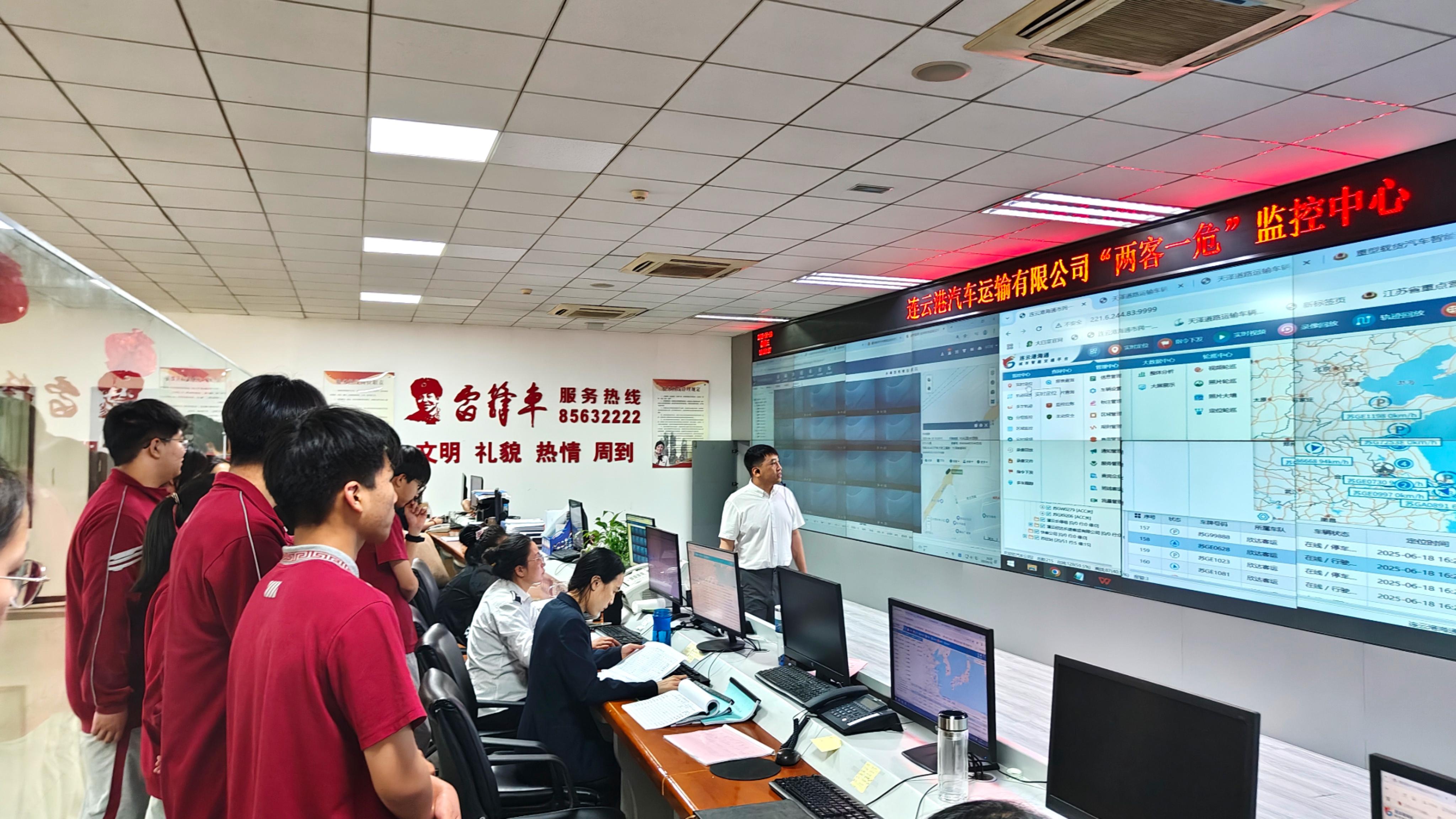 隨后,同學們走進汽車公司“兩客一?!北O(jiān)控中心。巨幅電子屏幕上,?;愤\輸車輛的實時軌跡、駕駛員狀態(tài)、車輛運行參數(shù)等數(shù)據(jù)動態(tài)更新,智能預警系統(tǒng)不斷閃爍提示。中心負責人向同學們展示了先進的監(jiān)控設備和智能化管理系統(tǒng),詳細介紹了如何通過實時監(jiān)控、數(shù)據(jù)分析等手段,對?;愤\輸車輛進行全方位、全過程的動態(tài)監(jiān)管,確保運輸安全。同學們直觀地感受到了科技在?;钒踩芾碇械闹匾饔?,也深刻認識到安全管理工作的嚴謹性和重要性。
