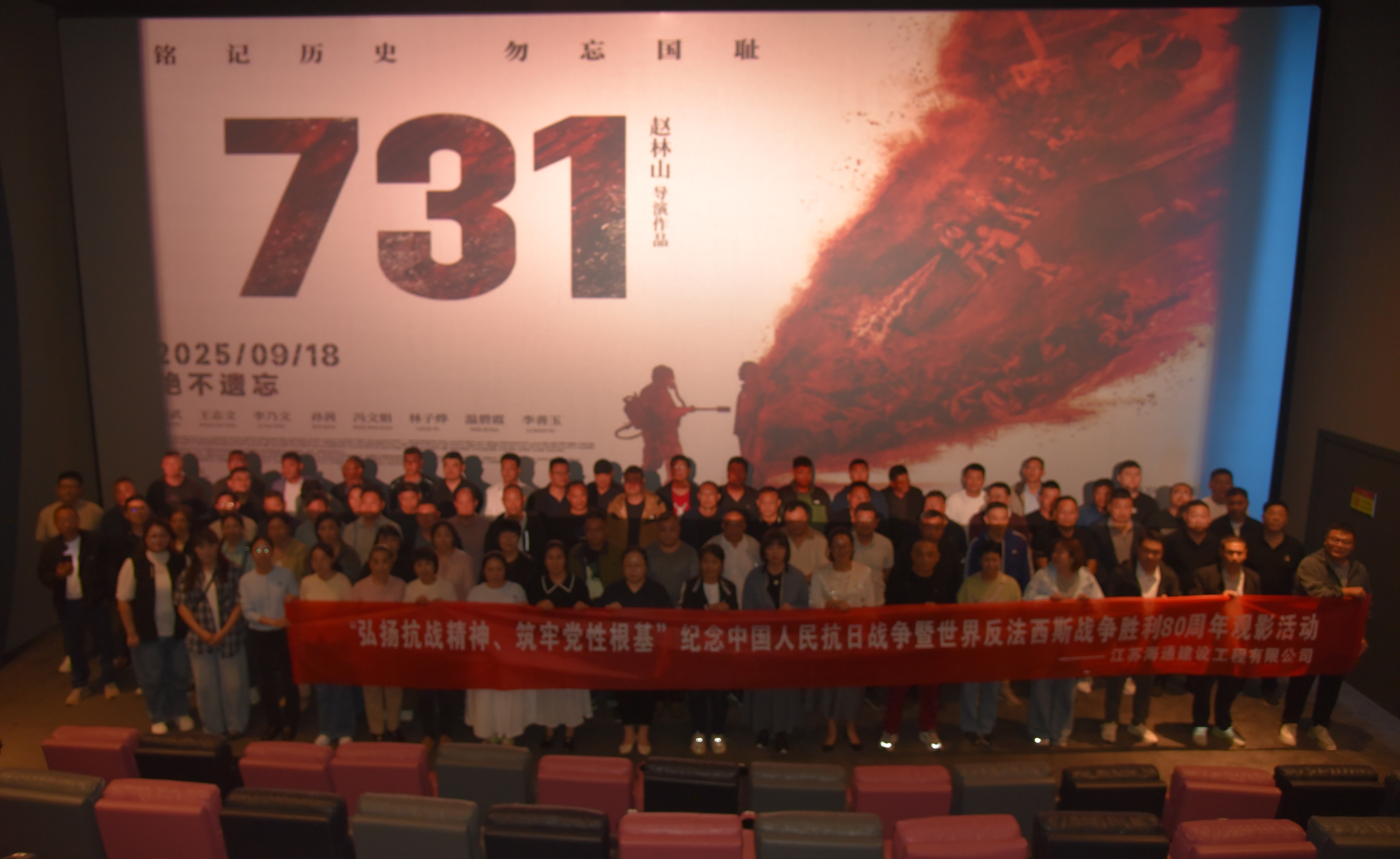 為深入學(xué)習(xí)貫徹習(xí)近平新時(shí)代中國特色社會(huì)主義思想,弘揚(yáng)偉大抗戰(zhàn)精神,激發(fā)黨員干部及群眾的愛國熱情與奮斗精神,近日,海建公司組織開展紀(jì)念中國人民抗日戰(zhàn)爭暨世界反法西斯戰(zhàn)爭勝利80周年觀影活動(dòng)。110余名黨員、入黨積極分子及群眾代表共同觀看了歷史題材電影《731》,在光影中重溫歷史,筑牢黨性根基。