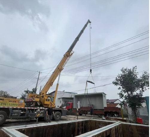 近日,海建公司北廣場項目部雨污水泵站預(yù)制艙順利吊裝到位,標志著該項目關(guān)鍵節(jié)點順利完成,為泵站的安裝及工程建設(shè)奠定堅實基礎(chǔ)。