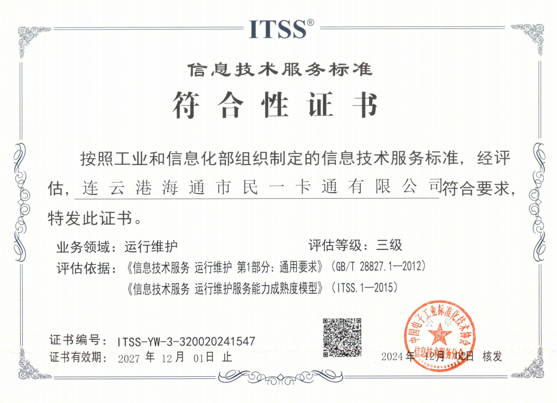 近日,市民卡公司在信息技術(shù)服務(wù)運(yùn)維領(lǐng)域取得重大突破,成功獲得ITSS運(yùn)維三級(jí)資質(zhì)證書,這標(biāo)志著公司在運(yùn)維服務(wù)管理的標(biāo)準(zhǔn)化和規(guī)范化方面邁出了重要一步。