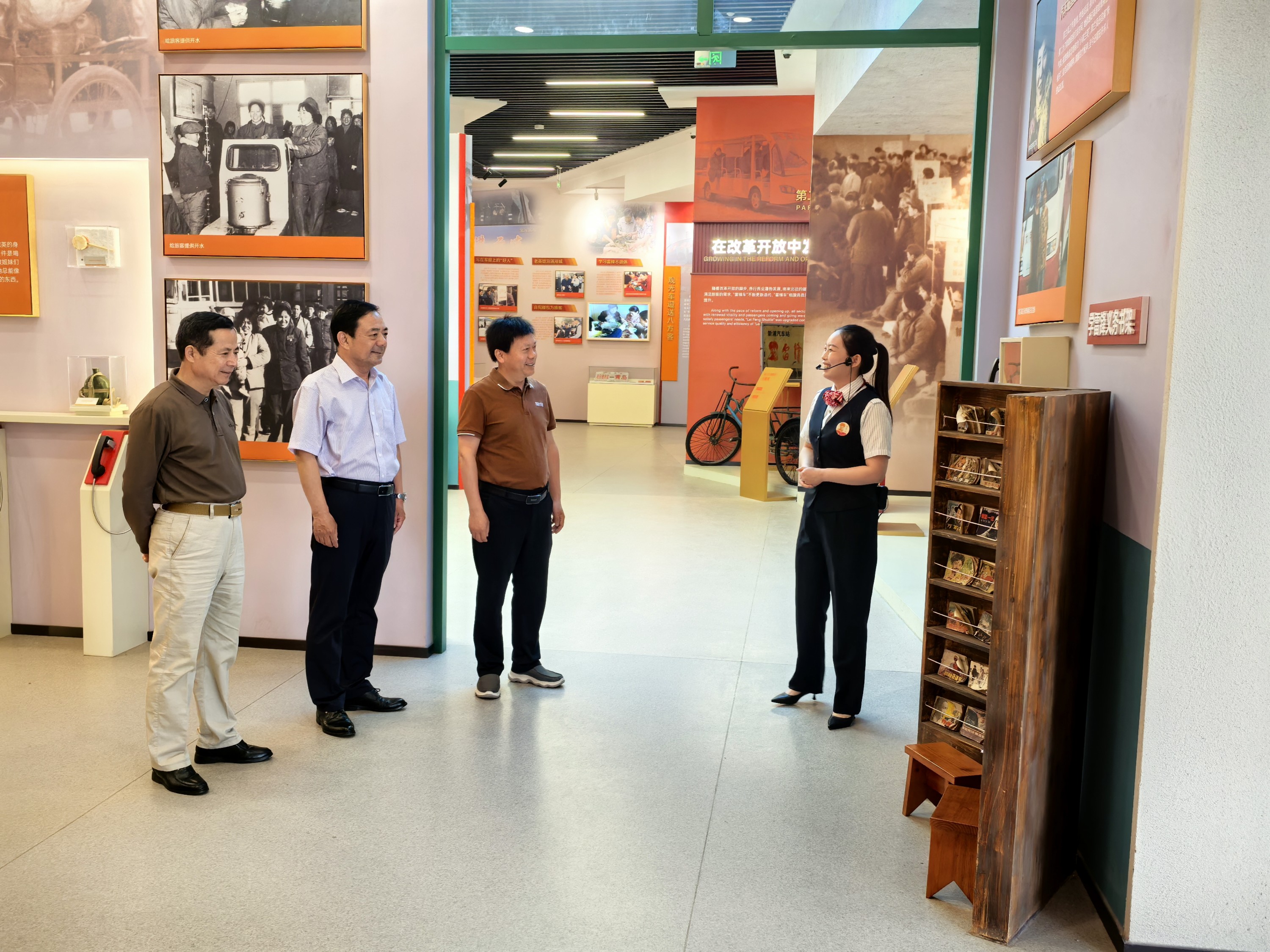 調(diào)研組一行首先參觀(guān)了“雷鋒車(chē)”事跡陳列館,通過(guò)珍貴實(shí)物、圖文史料、生動(dòng)故事,全面了解“雷鋒車(chē)”組62年來(lái)堅(jiān)守初心、服務(wù)人民的歷程。自1963年創(chuàng)立以來(lái),六代“雷鋒車(chē)”手接力傳承“寧愿自己千般苦,不讓旅客一時(shí)難”的信念,成為港城大地一面耀眼的精神旗幟。